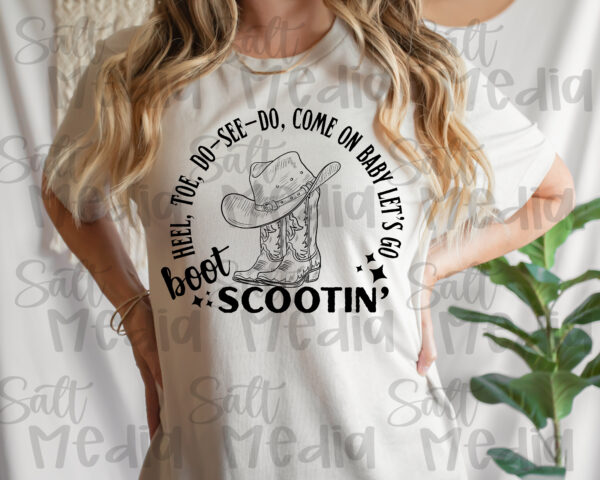 Heel, toe, do-see-do, come on baby let's go boot scootin' PNG quantity